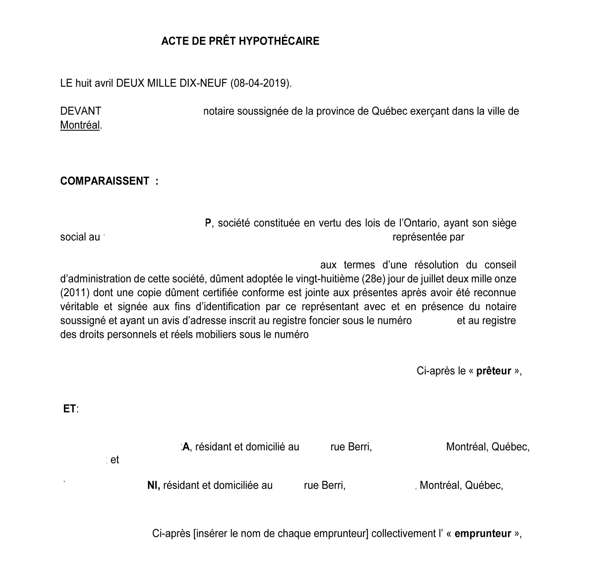 - Acte de prêt